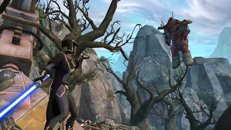 • Джедай Консул отлично понимает как работает Сила, как она связывает все сущее, и он использует это знание, чтобы поднимать в воздух врагов любого размера и потом швырять их на землю.