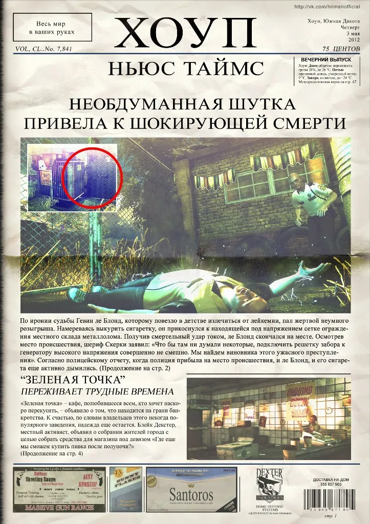 Это, я так понял, кусочки внутриигровой газеты, которая после миссий? Ну вполне неплохо, по крайней мере лучше чем в четвертой части, где постоянно были жуткие пёрлы вроде "47 убивает 30!"