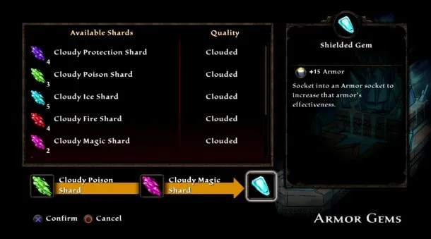 (3) - Вы можете объединить (Combine) 2 осколка одного уровня качества, чтобы получить более качественный осколок. Вы находите более качественные самоцветы;