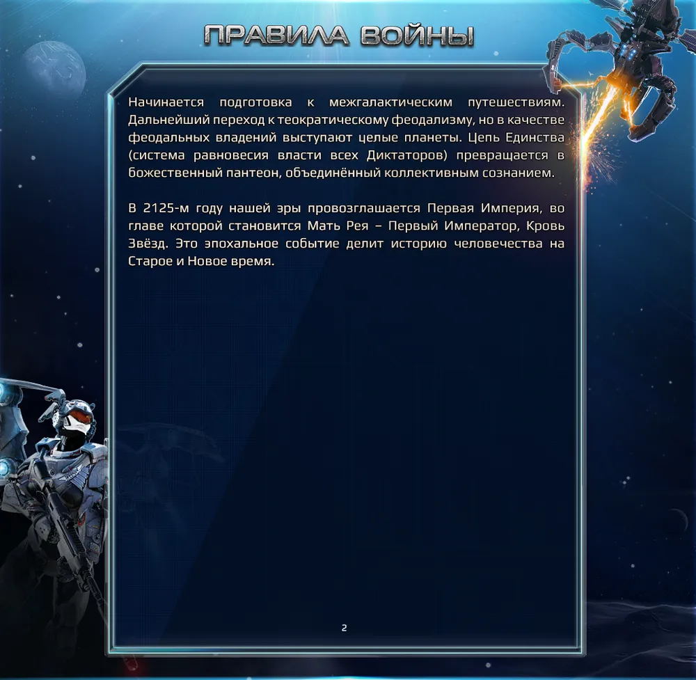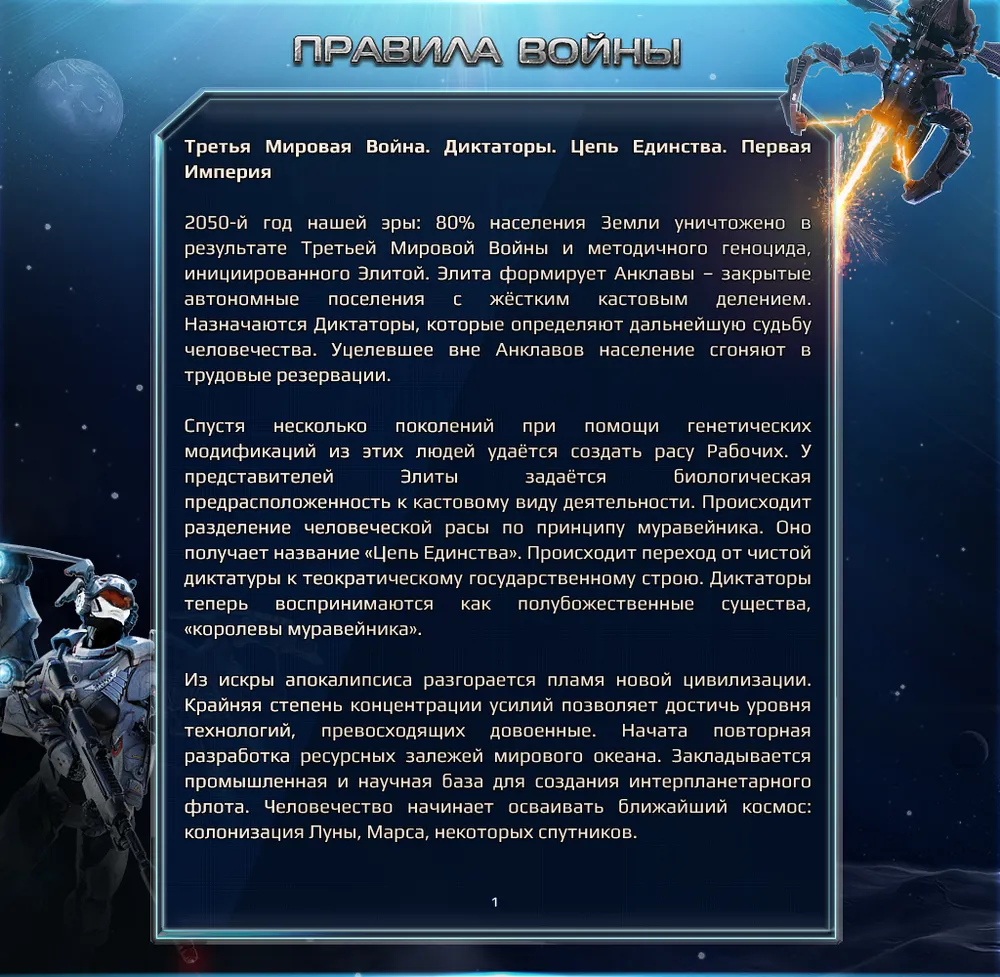 Вселенная "Правил войны" содержит в себе 2000-летнюю историю и по эпичности не уступает многим образцам игровой стратегической классики жанра sci-fi.
