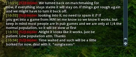 Мы планируем выпустить небольшой патч для клиента чтобы уладить некоторые вопросы. Это случится скоро и после этого мы начнем патчить сервера. После этого всё должно работать лучше.