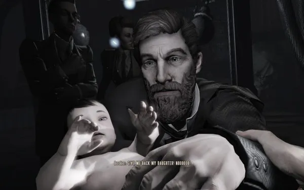 Соответственно, единственное отличие этой попытки спасти Элизабет в том, что Букеру все объяснили и все показали. Он понял, что он и есть Комсток, что он мог им стать. И единственный способ остановить Комстока во всех вселенных — позволить Элизабет из всех вселенных убить его после крещения, «задушить Комстока при рождении».