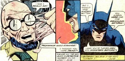 Действительно, Хьюго Стрейндж не ААА злодей, ни разу не гипершишка и не суперпреступник мира Бэтмен. И хотя как-то Бэтс называл Хьюго величайшим из всех суперзлодеев, это он верно спросонья, не обращайте внимания. С другой стороны как раз неизвестность делает Хьюго интересным, по крайней мере, я заинтересовался профессором именно потому, что ничего о нём не знал.