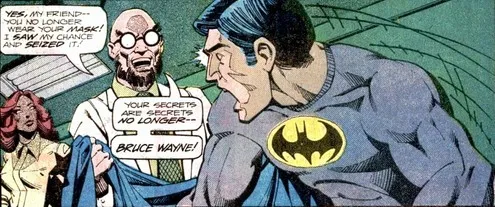Отравленный Бэтмен вырубился, а Хью, сдёрнув с него маску, узнал в своём заклятом враге Брюса Уэйна. Полумёртвый Брюс занял своё место на больничной койке лечебницы Стрейнджа, вскоре к нему присоединился его верный дворецкий – Альфред. Сам же Хьюго занял место Уейна, «нарядившись» в его лицо.