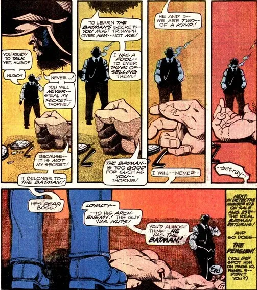 Конечно, Хьюго не разбился, во вселенной Бэтмен все мало-мальски значимые персонажи умирают навсегда крайне редко. Обычно их смерть заканчивается эффектным воскрешением.