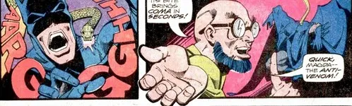 Ворвавшись в ординаторскую Мышь застал там преступную парочку – доктора и медицинскую сестру. Мышь незамедлительно потребовал объяснений, мол, - «Что за беспредел происходит-то? Ведь уплочено же за всё!». В ответ доктор стянул с себя лицо, оказавшееся маской. Под личиной врача скрывался сам Хьюго Стрейндж. Бэтмен уже был готов арестовать подонка, да не тут-то было, Мыша вдруг укусила змея. Ага, змея, удивительно, блин. Наверно какая-то специальная тренированная змея. Можно натренировать змею? Просто было бы неплохо иметь с дома пару тренированных змей. Забудьте... Не суть…