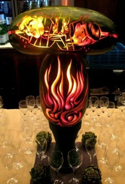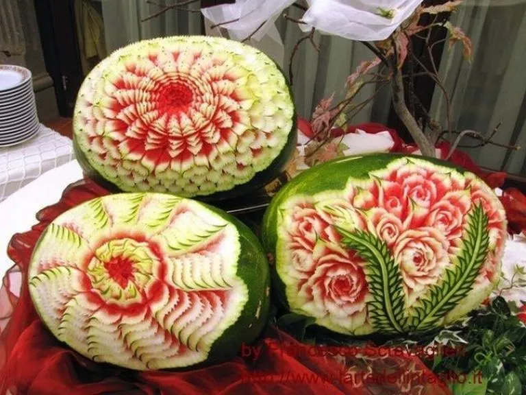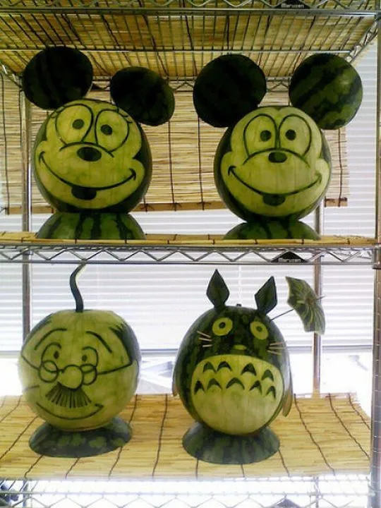 Замечательные работы на арбузах. Не кажому такое под силам. Наслаждайтесь.