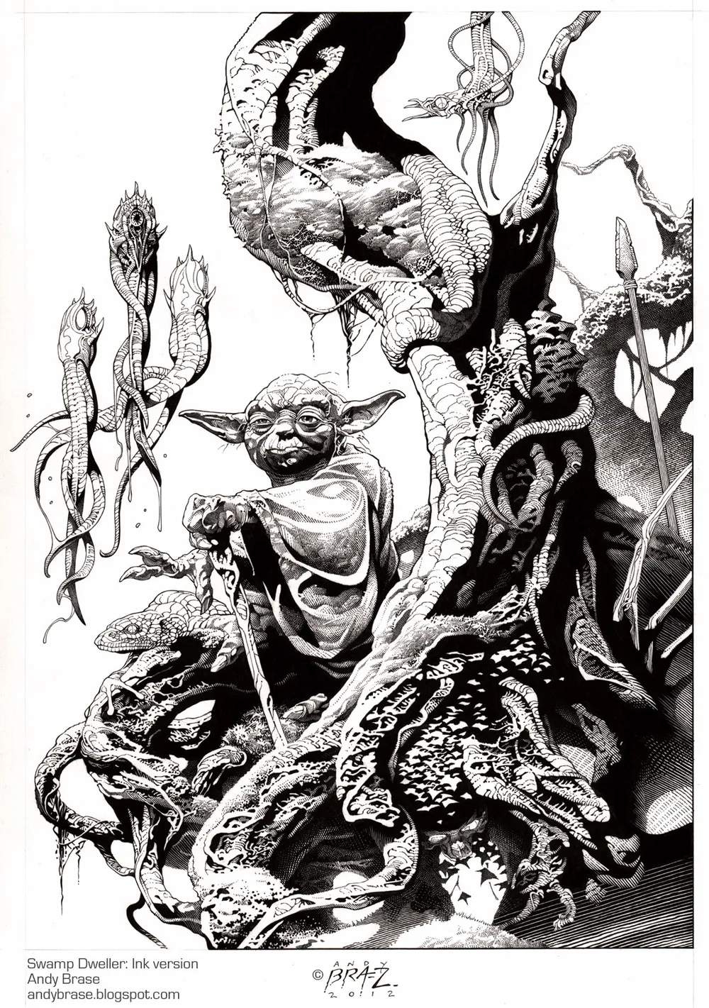 Энди известен широкому кругу по мистическим сериям в линейках Dark Horse, Marvel, IDW и Image Comics. Брасе успел отметиться и на поприще музыкальном, где работал над обложками известных готик-групп, а также иллюстрациями к романам ужасов. На его официальном сайте ад, Ктулху и гипертрофированные клоуны, поэтому выкладываю подборку наиболее позитивных и ярких работ, связанных с комиксами. Характерные черты работ художника – это изломанные линии, преимущественно темная палитра и непременное наличие отсылок к средневековому мракобесию, что не мешает оценить по достоинству работу с тенями и эксперименты с цветом и формой.