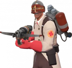 Лечебная пушка - это то, что делает Медика Медиком. Чаще всего Вы встретите Медика именно с этим "оружием" в руках. Лечебная пушка не может наносить противникам урон, но ей это и не надо. Пока луч пушки соединяет Вас и союзника, он лечит Вашего пациента и дает ему бонус к здоровью, который пропадет через 20 секунд после прекращения лечения. По мере лечения Медик будет копить убер-заряд, который при полном накоплении может сделать Вас и Вашего пациента неуязвимым к любому урону на 8 секунд, что позволит прорвать сильную оборону или выиграть неравный бой. Но учтите, что с наполненным убер-зарядом Вы станете лакомой целью для вражеской команды и особенно Шпионов.