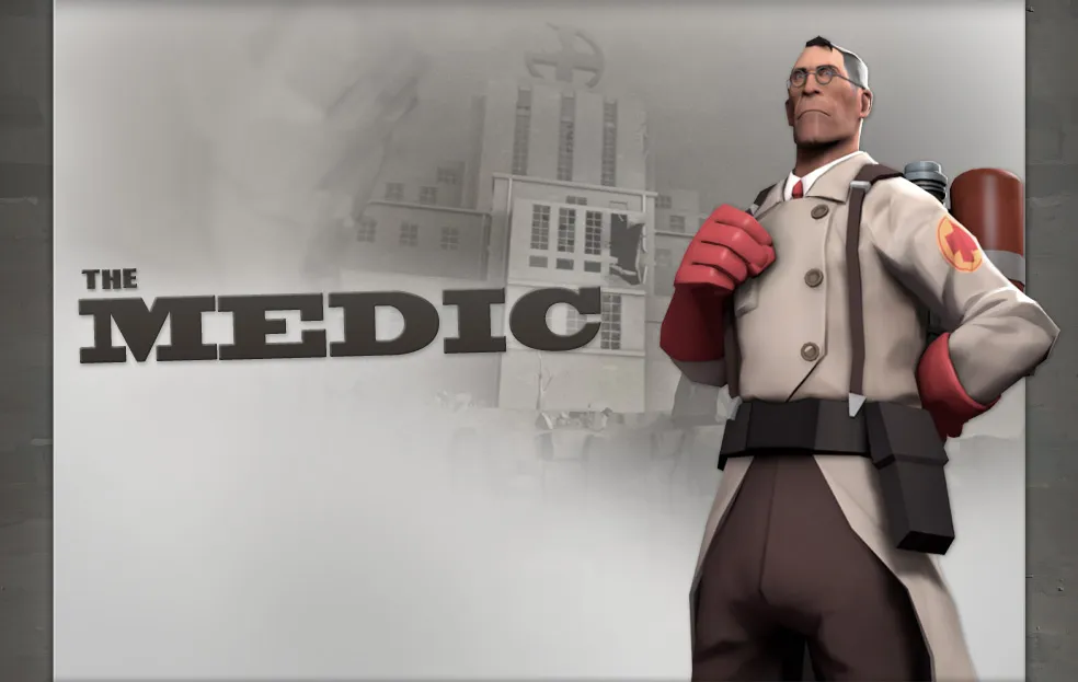 Медик является классом поддержки в игре. Его основная задача в команде - лечить союзников и давать им убер-заряд. По мере лечения у Медика копится убер-заряд, который в зависимости от лечащей пушки может дать неуязвимость, критические выстрелы или быстрое лечение. Ценность хорошего Медика для команды неоспорима, поэтому он часто является первостепенной целью для вражеской команды и особенно Шпионов. Поэтому Медику необходимо постоянно держаться позади своих товарищей и всегда ожидать атаки Шпиона.