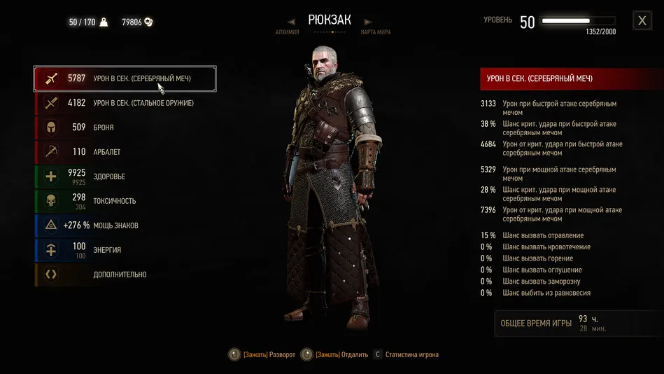 Финальный урон от серебряного меча на 50 уровне с эйфорией и 4 отварами и 1 зельем