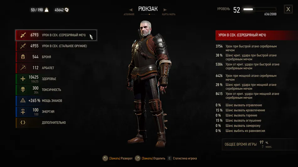 Базовый Урон от серебряного меча на 50 уровне до использования отваров