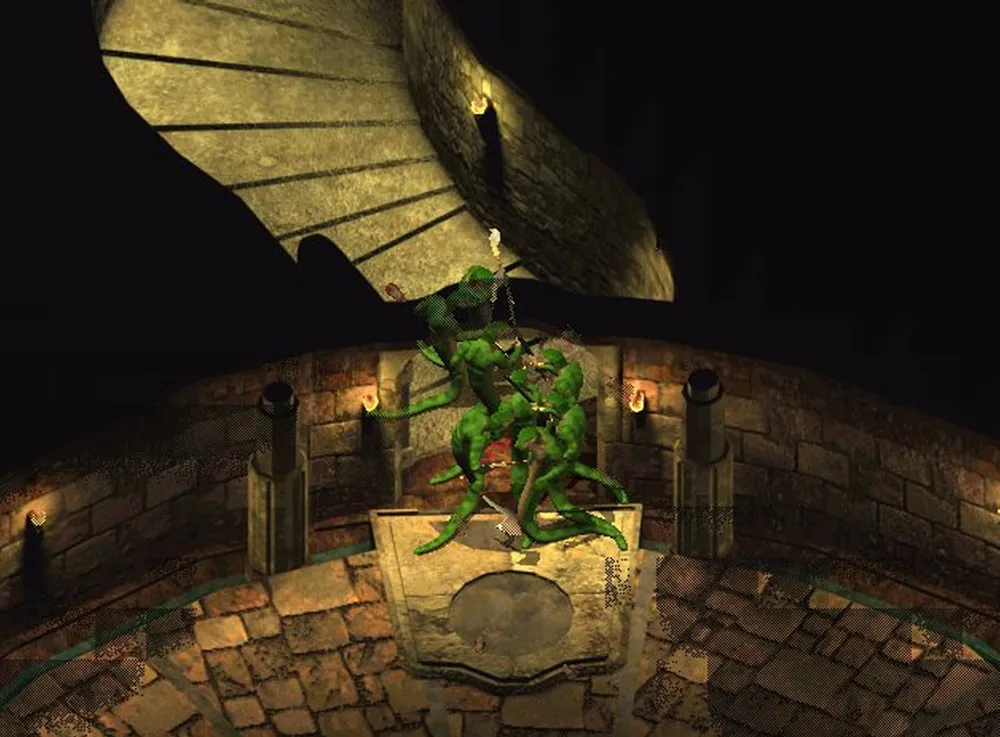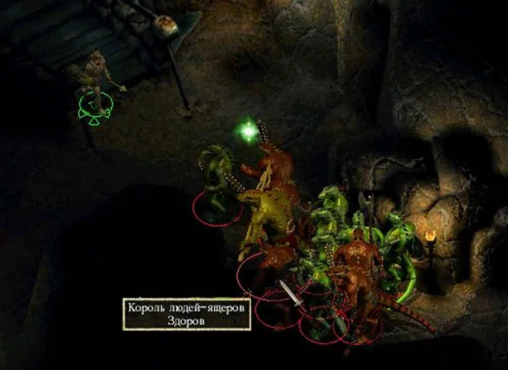 Глаз Дракона населён ящеролюдьми, которые – это становится недоброй традицией! – в первую очередь стараются обездвижить героя. Причём не так просто добраться до их мага и прервать заклинание ударом; зато из зоны его действия можно успеть выбежать. Сами по себе противники довольно слабые: ни брони, ни щитов. Шаманы ящеров оставляют после своей смерти огненные зелья (что наводит на мысль – тролли? Кого же ещё можно поджигать в подземельях?), а все ящеры – золото. Откуда оно у них и где держали, если нет карманов? И тут меня даже холодный пот прошиб – неужели твари поедали людей!? Смерть, смерть им!