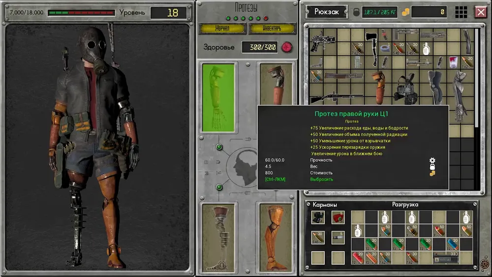 3. Протезы. То есть персонажа тоже можно кастомизировать. Потеряли руку или ногу? Установите себе протез, который будет не хуже, а по каким-то характеристикам даже лучше потерянной конечности. Правда телу придётся адаптироваться к подобными изменениям, что увеличит потребность в сне, еде и воде.