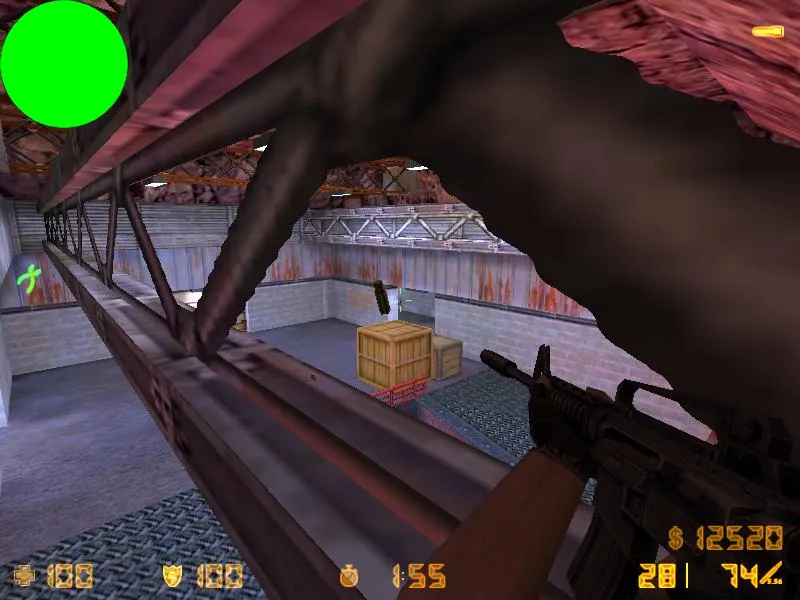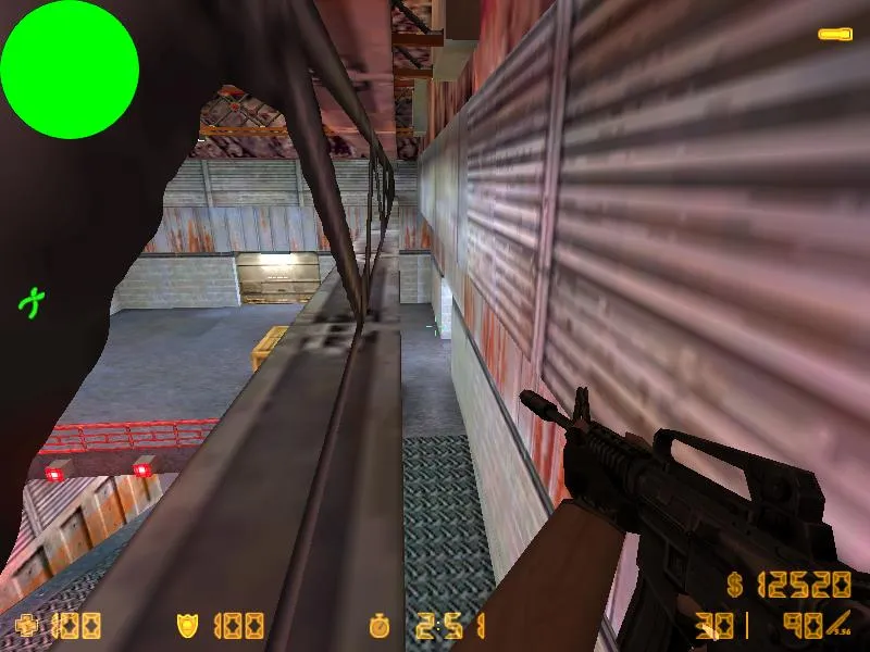 Плюсы: Очень интересная позиция, которая очень часто поражает своей простотой, но не перестает быть неожиданной. Позволяет вам без труда отворачиваться от гранат и, к тому же, вы довольно быстро можете сыграть в «спиногрыза», поймав атакующих А-базу террористов в середине раша.