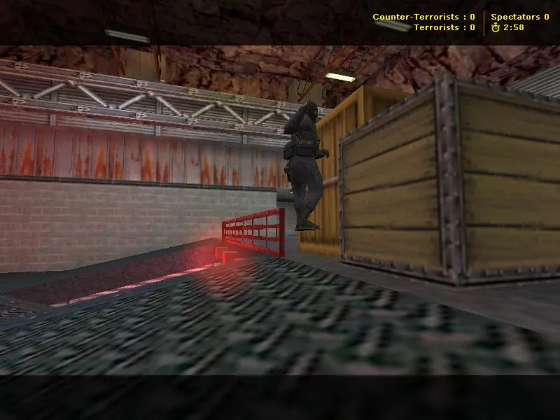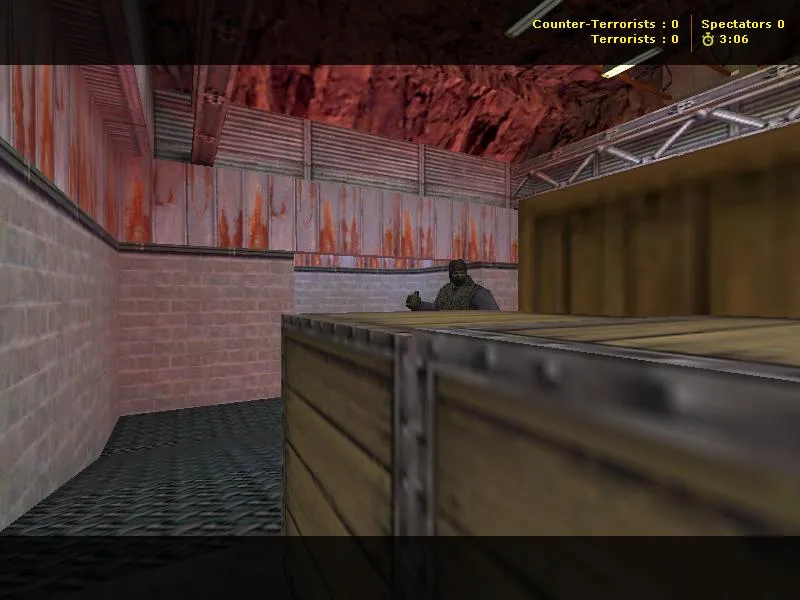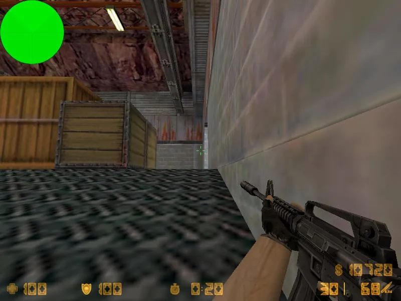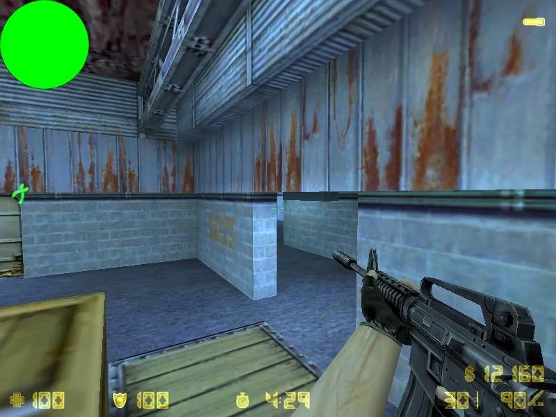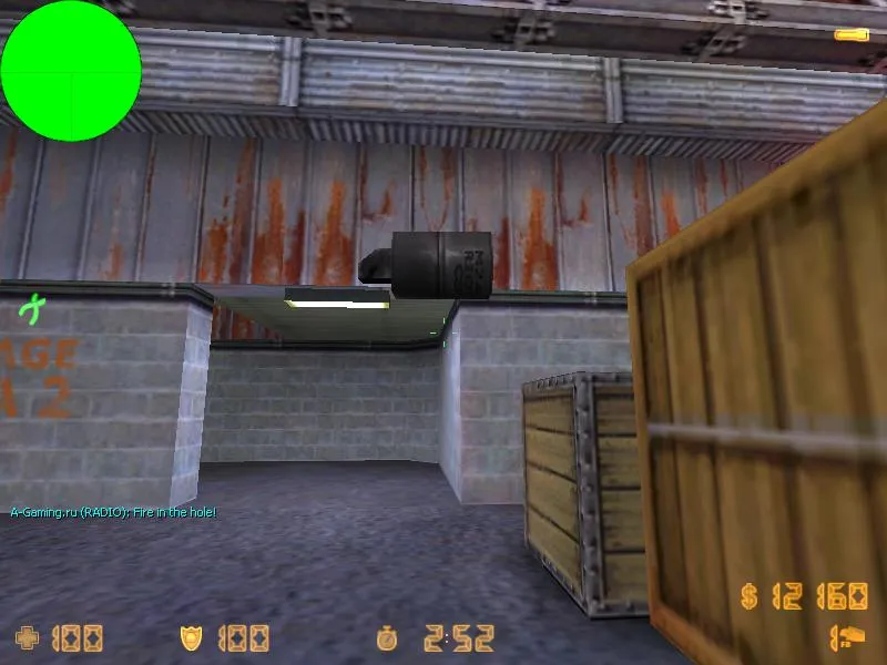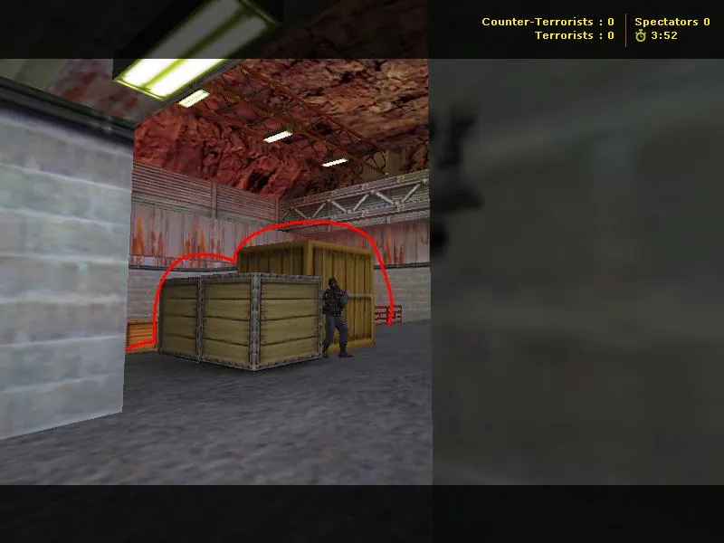 Сидя в данной точке, вам будет нетрудно попадать точно в головы проходящим по коридору террористам. Минус позиции в том, что если вы сразу не убиваете противника, он может пройти дальше и получить преимущество над вами, так как будет знать ваше месторасположение, а вам прийдется теряться в догадках относительно того, с какой стороны ящика он выйдет. Тем не менее, этого легко избежать, если ваш тиммейт займет такую позицию: