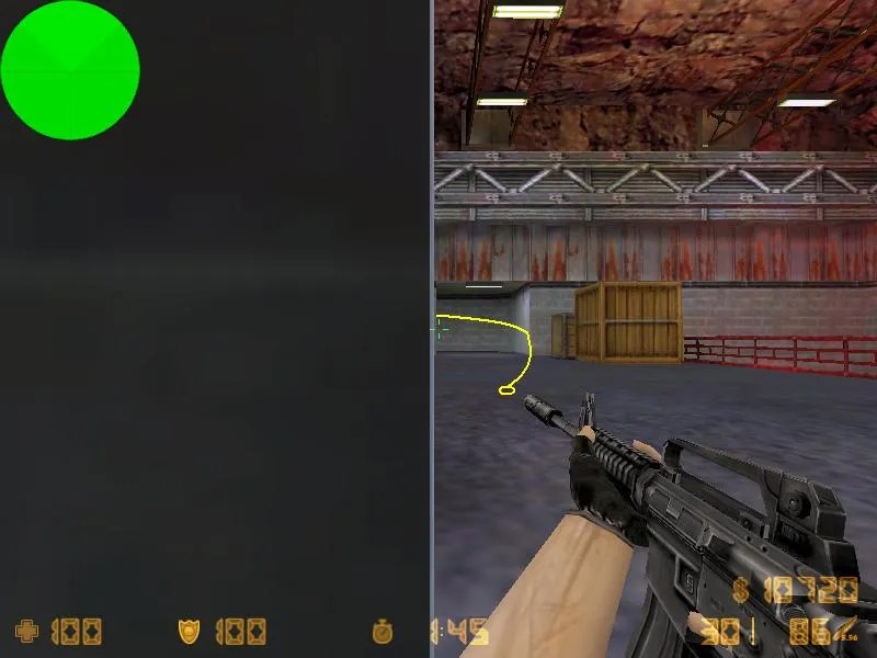 Желтыми линиями на некоторых скриншотах в разборе обозначены пути полета самых стандартных флэшей, которые использует большинство команд. Знание того, КАК вас могут ослепить – первый шаг к тому, чтобы предотвратить это.
