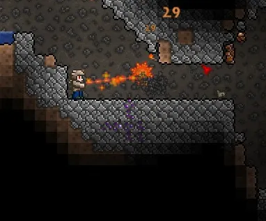 Моему взору открылась темная, просторная пещера. Довольно неприятное ощущение, как будто по спине спустился кубик льда, холодно и мерзко. Но раз уж я спустился не время приобретать клаустрофобию. Я двигался прямо по тоннелю аккуратными шажками, что бы ни споткнуться и расставляя факелы на стенах. Впереди я увидел слабый блеск, подойдя ближе можно было различить какой то камень, и большую жилу железа. Подойдя ближе, я обратил внимание на камень, это было надгробие, самое натуральное надгробие. Надпись на нем гласила: «Здесь лежит Горын, он любил играть, но не знал, что им играют», жуть какая, на стене были видны отметены кирки. Странно, но я не испугался. Всё это было очень знакомым. Я рефлекторно обернулся, не знаю зачем, просто как будто по привычки, и ничего не заметил, только освещенную, неровным светом факелов, пещеру. Я приступил к разработкам жилы. Такое ощущение что за мной наблюдают. Поворачиваюсь, сразу мне в лицо врезается летучая мышь, я не ожидал этого и падаю на копчик. Не дожидаясь пока я приду в себя, маленькая бестия пикирует снова, и удачно врезается в навстречу идущую кирку. Всё так знакомо, такое чувство дежавю. Но тем не менее чувство паранойи меня не покидало. Я услышал шаги. Не шарканье зомби, не шлепанье слизней, а самый натуральный, уверенный шаг. Я спрятался за углом, дальше тоннель резко уходил вниз, так что если это был враг о котором я не знал, я мог бы его просто сбросить в темноту. Тем временем шаг становился громче, отчетливее стал доноситься металлический отзвук. Я не выдержал и на миг выглянул из-за угла. Ко мне шел рыцарь весь закованный в темно зеленый метал. Из сочленений его брони при каждом его движении вспыхивали языки пламени, в руках у него была непропорционально большая кирка, сиявшая темно красным цветом, словно её только что вынули из печи и забыли остудить, при каждом взмахе с неё падали яркие искры, гаснущие сразу после падения на пол.