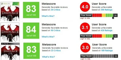 Говорить о фанбойских войнах в данном случае глупо, ведь оценки Dragon Age II низки для всех платформ. Большей части игроков Dragon Age II не понравилась из-за того, что разработчики упростили игровой процесс, чтобы сделать его более доступным и понятным новичкам.