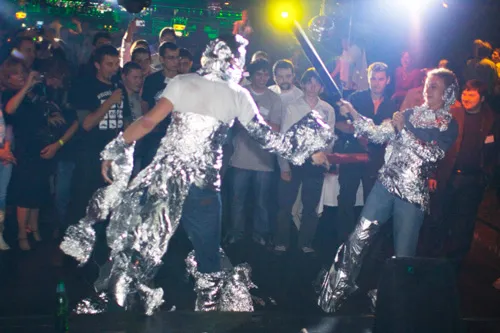 Наконец, получив удовлетворяющие ответы все вернулись к празднованию. В это время музыканты из группы Salvador буквально плескали энергией со сцены, музыка струилась и вибрировала по залу, призывая к танцам до упаду.