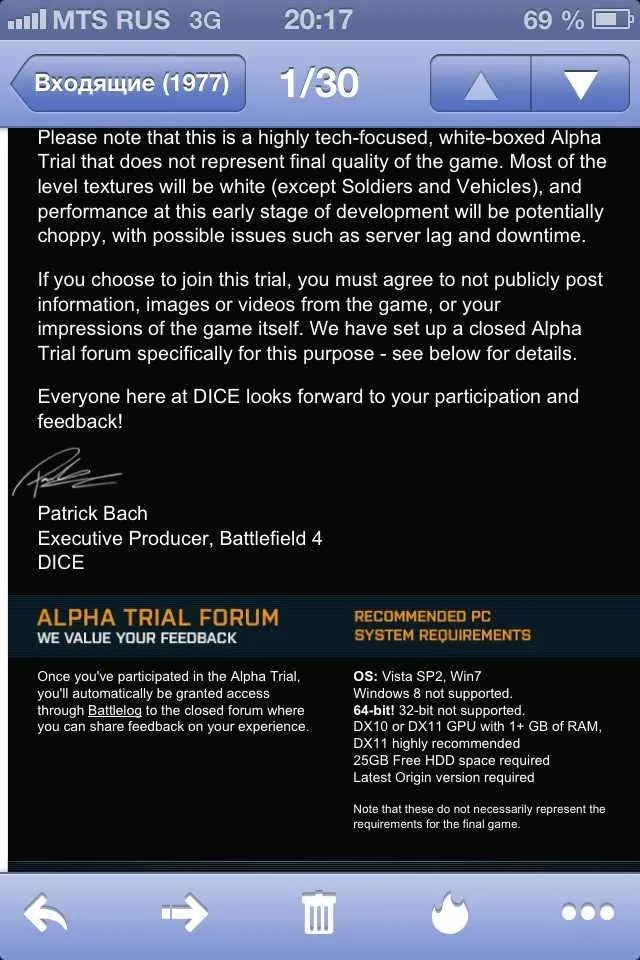 16 июня разработчики начали рассылать приглашения на закрытое альфа-тестирование Battlefield 4 для РС.