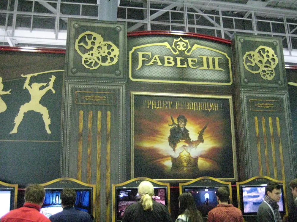 Пару минут поиграл в Fable III, поскольку вторая часть за неимением ящика от дяди Билли прошла мимо меня, триквел ожидаемо вызвал восторг. Бродил по лесу, думал, что вот-вот наткнусь хотя бы на шайку разбойников. Друг уже звал идти дальше, но я отнекивался со словами "Подожди, только убью кого-нибудь!.." По крайней мере, удалось испытать боевую систему в сражении со стаей волков. Герой взялся за двуручный молот и стал рубить противников направо-налево (кровушка выглядит сочно, детализация окружения впечатляет). Порадовали спецэффекты и магия, в частности возможность прожарить противника молнией до скелета.