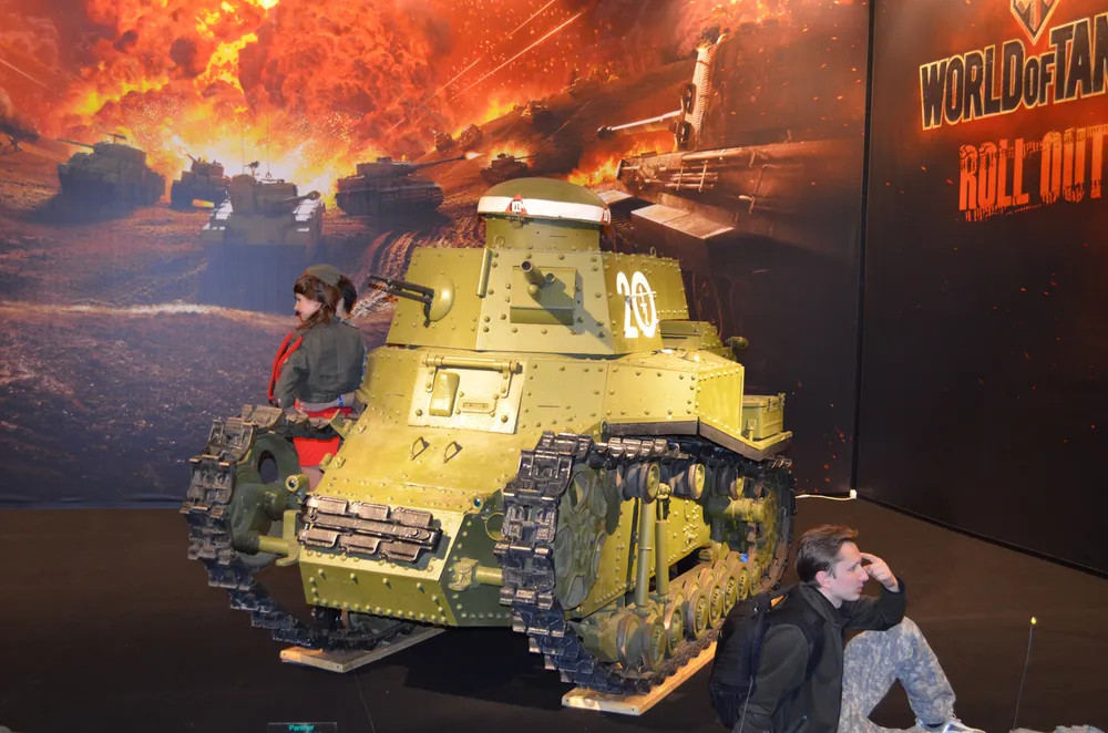 А в другом уголке ИгроМира можно было сфотографироваться вместе с девушкой на фоне танка. После этого, на специальном ресепшене Wargaming вы сможете получить распечатанную фото в рамке. Фото, скажу я вам, не очень. Ладно я ждал 2 часа из-за очереди, но криво распечатать (белые поля) и ту, на которой я моргнул - это талант.