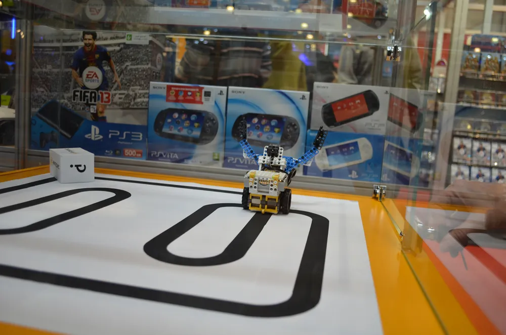 Бедный робот, который целый день катался по чёрной дорожке в поисках коробки. Находя её, он брал, относил в случайном направлении и опять возвращался на линию.