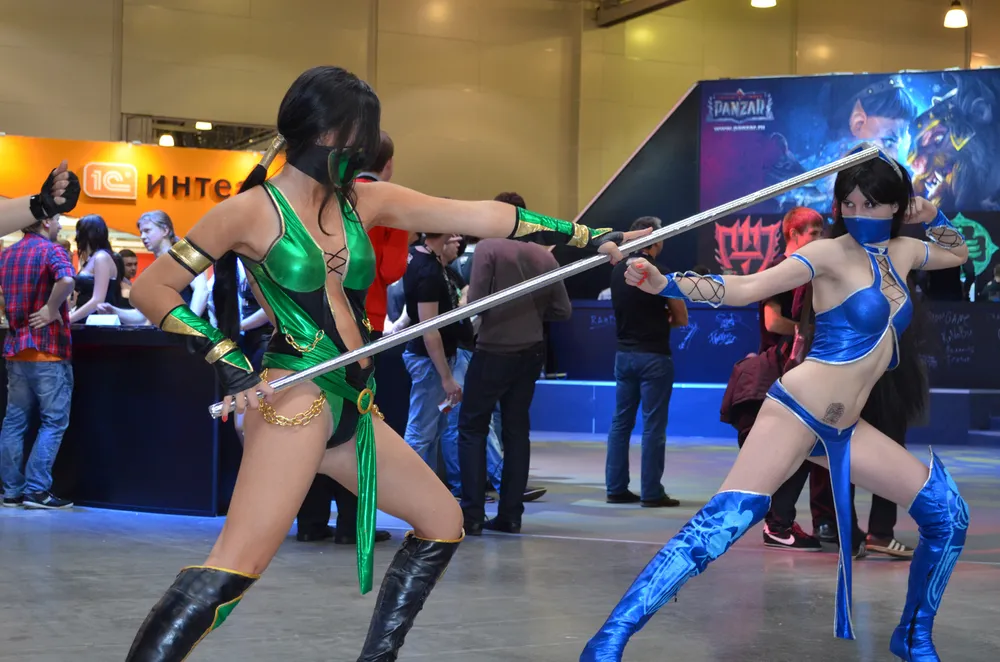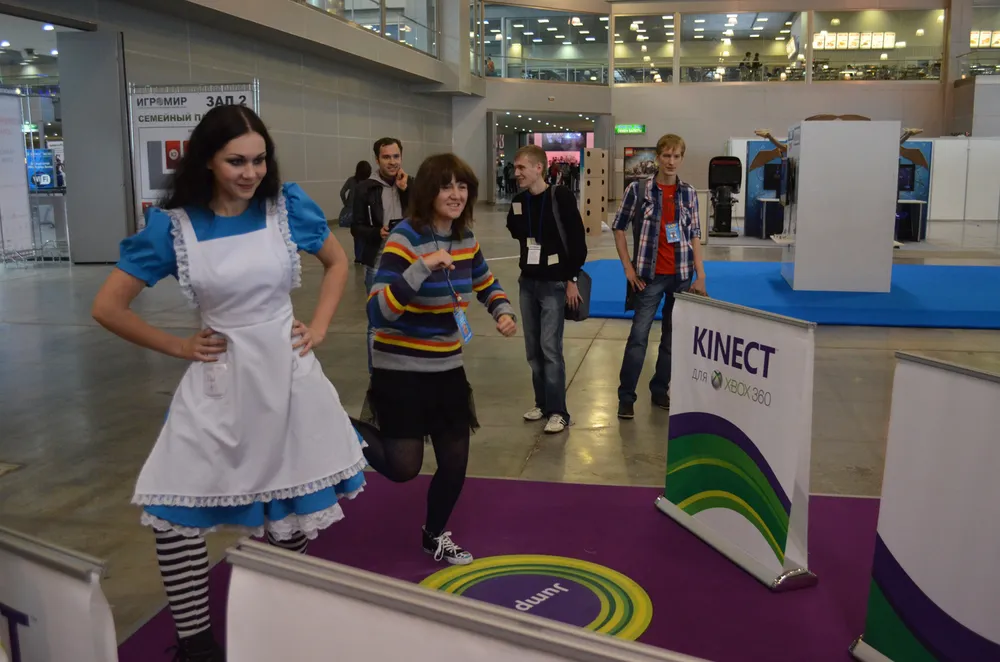 По пути ко входу меня встретили два таких брата-акробата с надписью Wii на костюмах и красивые девушки от mail.ru.