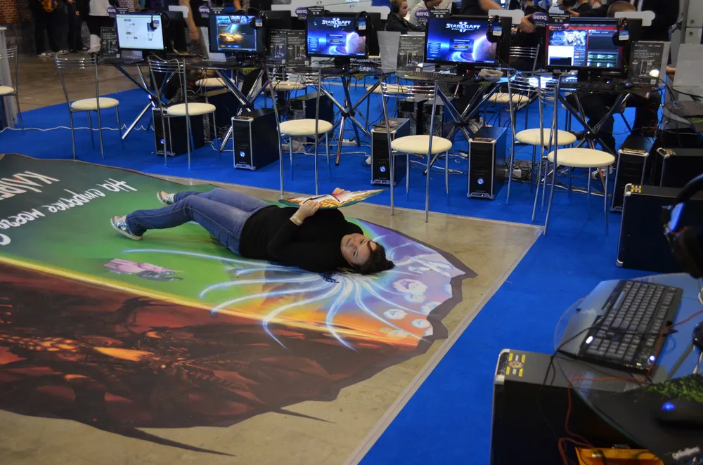 После, попал в "закрытую зону". Там была площадка Shadow Company. Геймеры играли в саму игру на ПК, армрестлинг, запомни вещи и т.д., тем самым зарабатывали пачки денег, которые можно было обменять в баре на разные напитки или безделушки.