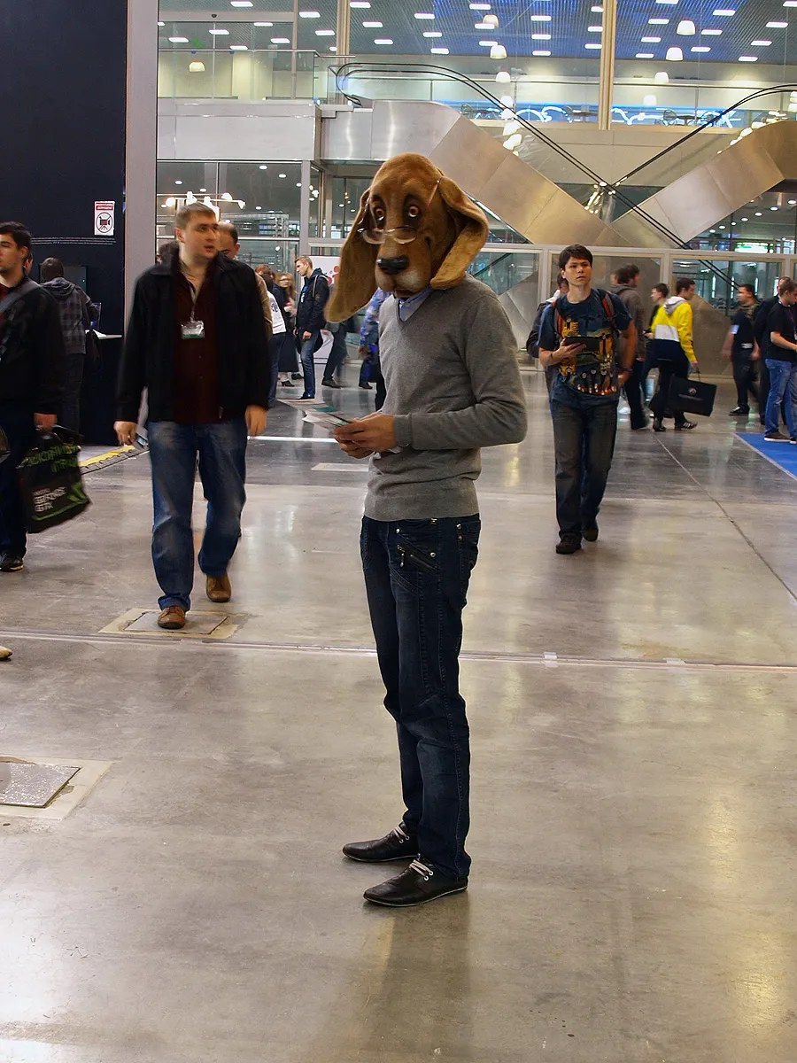 У маски собаки были такие несчастные глаза, что хотелось подойти, погладить и сказать, что через четыре дня это все закончится. Данный товарищ, к слову, раздавал рекламки Юлмарта.