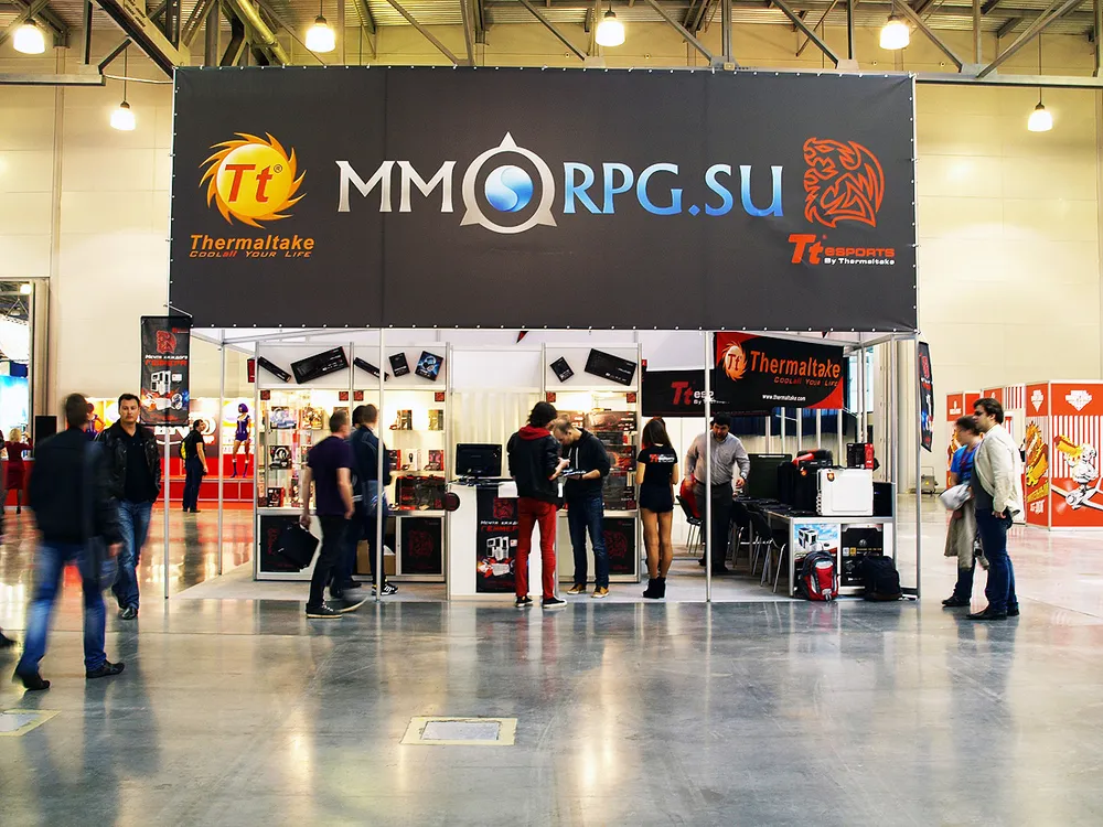 Стенд Thermaltake. Чуть позже они начали лотерею с вполне себе достойными призами вроде ушек-мышек и прочего лута.