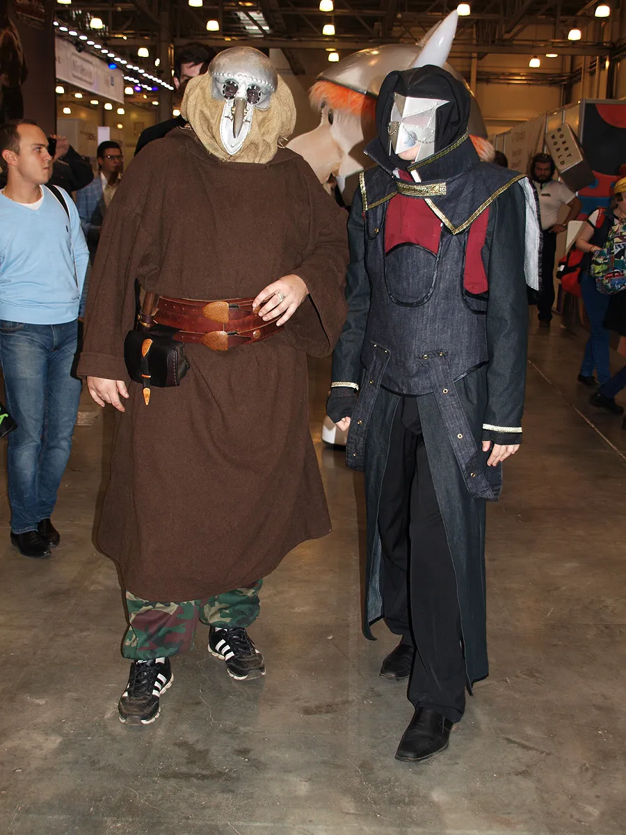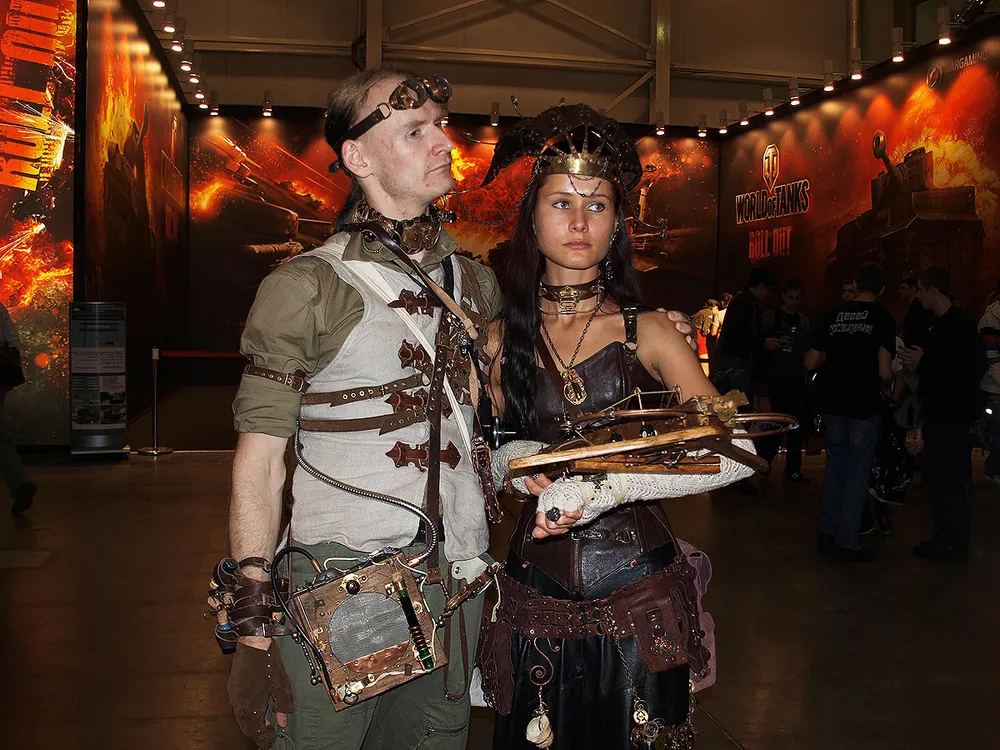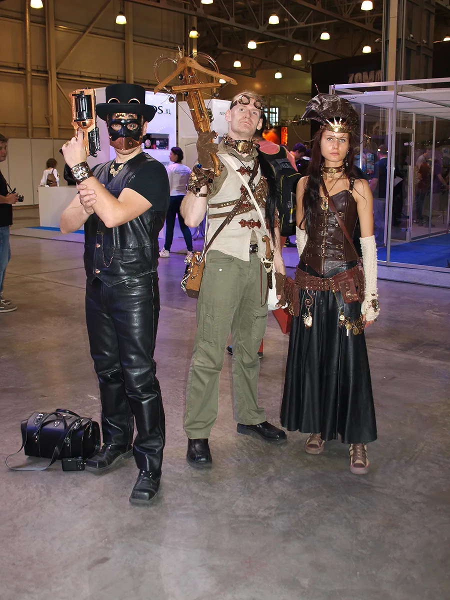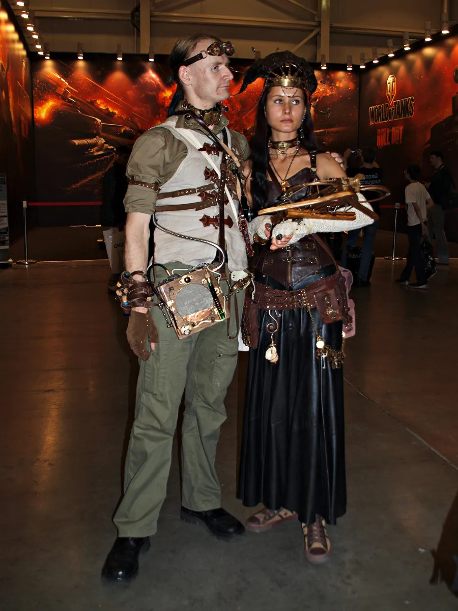 Костюмы стимпаковщиков... стимпанковцев... стимпанков... Тьфу, в общем, костюм стимпанк-косплееров я изучала дооолго. Наиболее частый вопрос, который им задавали: "А арбалет стреляет?". Они даже пожаловались, что, вероятно, скоро придется сделать так, чтобы стрелял.