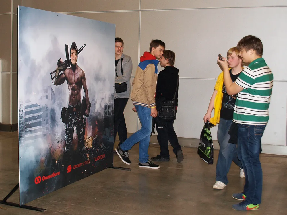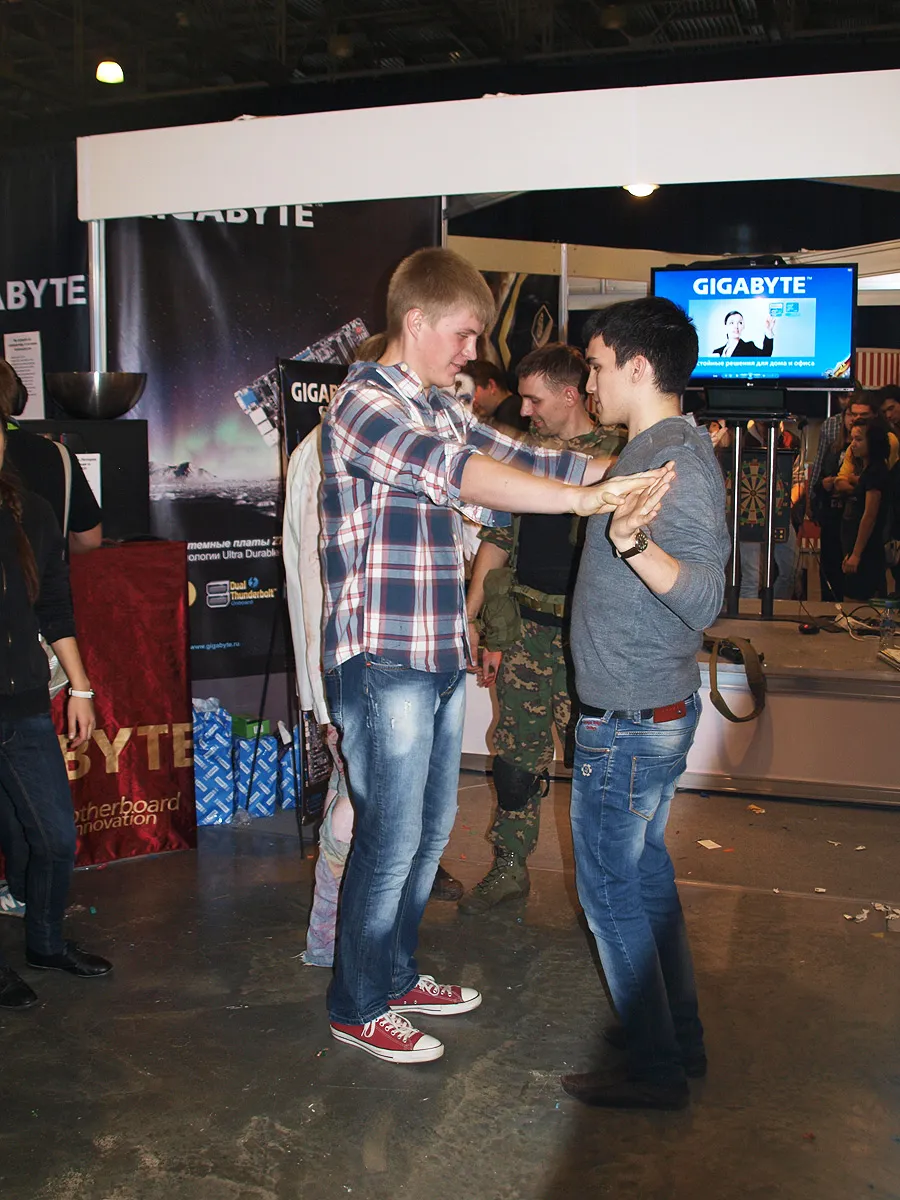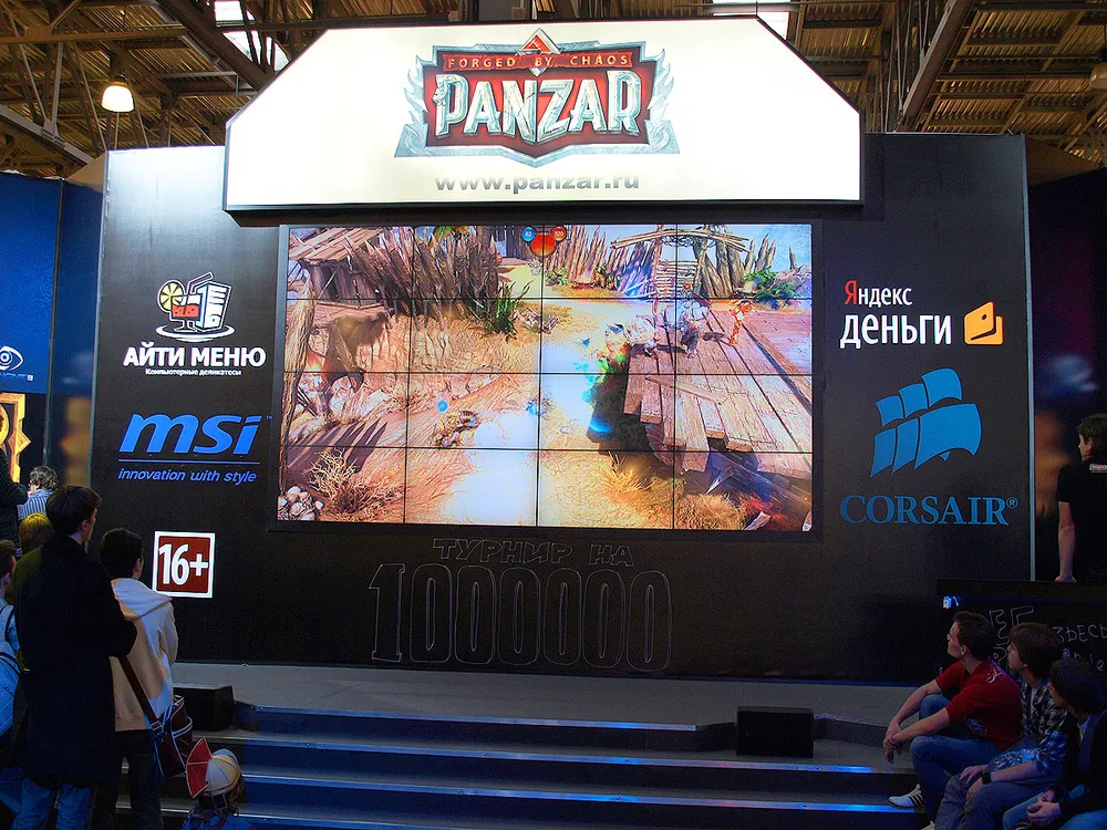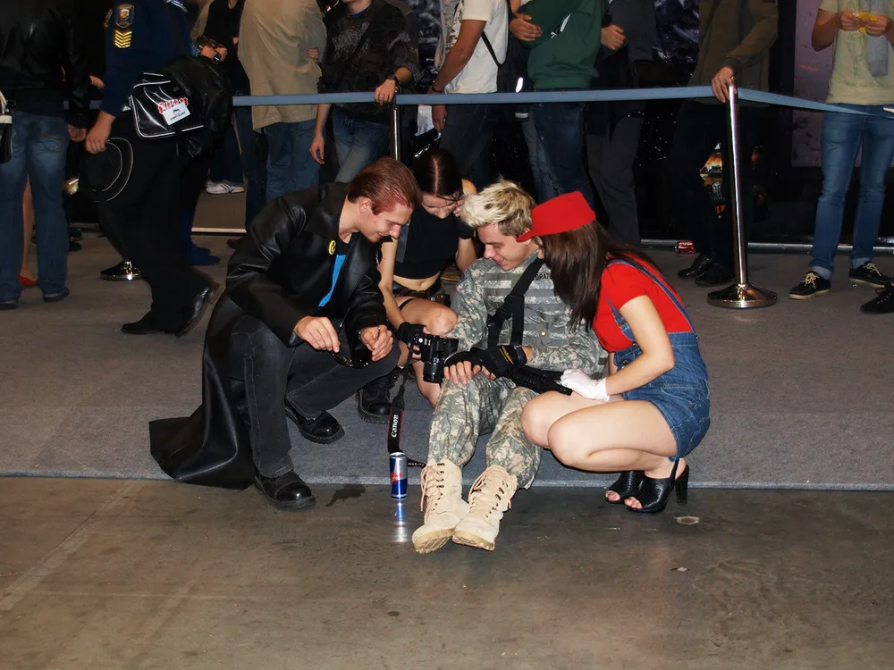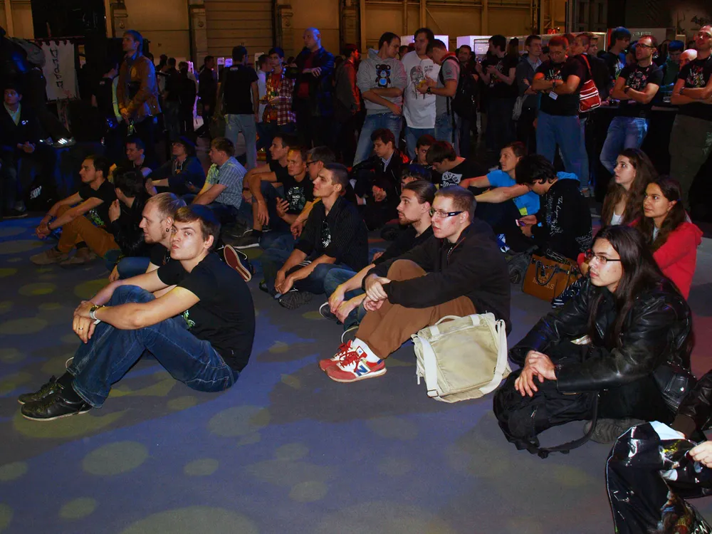 В этот день начался турнир по игре Panzar с призовыми в размере 1000000 рублей. Я обходила этот стенд немного по дуге, ибо было ну очень громко. Если стоять возле колонок, то можно было почувствовать, как звуковые волны выталкивают твой мозг через ухо. Серьезно. Хотя кто-то просидел там чуть ли не весь день - и ничего... Например, вот эти ребята-зрители.