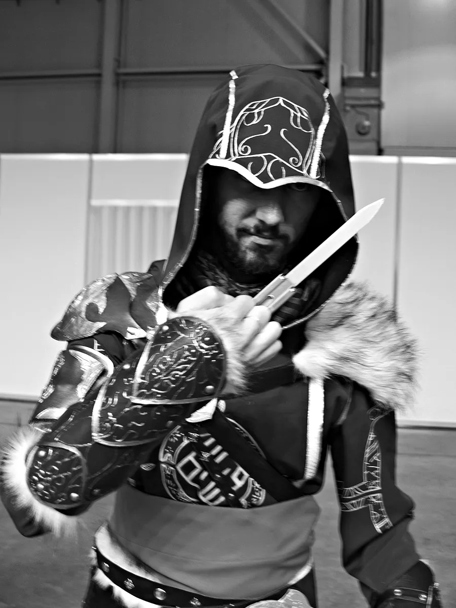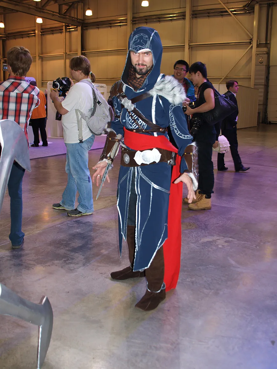 Эцио Аудиторе бла-бла-бла. Костюм крут. Косплеер тоже. Лезвие не выскакивает, к сожалению - для этого не удалось вовремя достать одну деталь. Но все равно костюм крут.