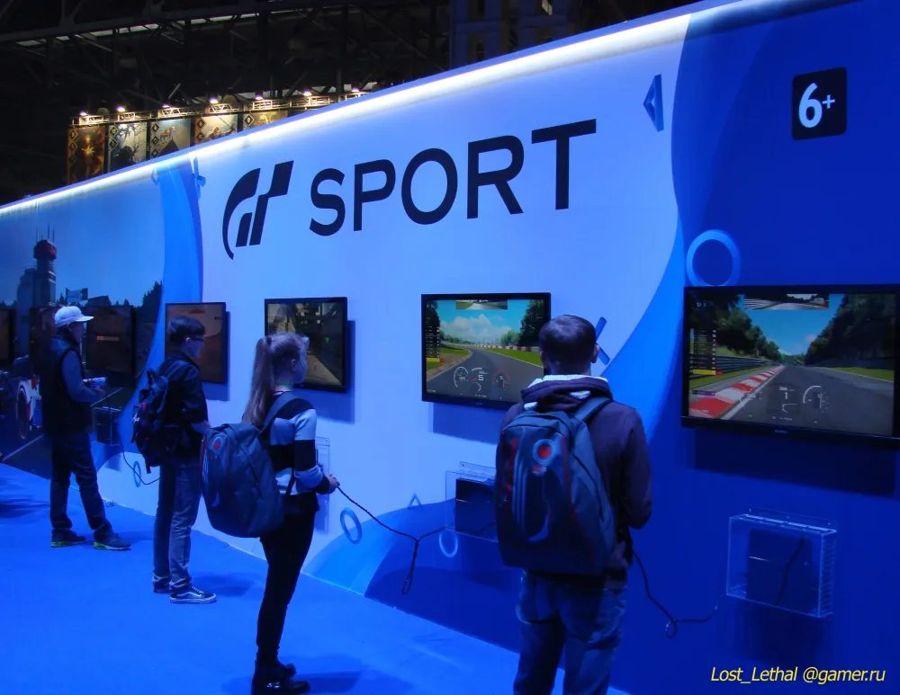 На стенде PlayStation показали автосимулятор Gran Turismo Sport, который перенесли с этого года на следующий. Испытать его можно было, используя обычный геймпад или сидя за рулём. Увиденным остался доволен. В демоверсии есть выбор из нескольких трасс и машин, графика хорошая. На мой взгляд, вполне можно сделать её и общедоступной, ведь до выхода игры ещё долго.