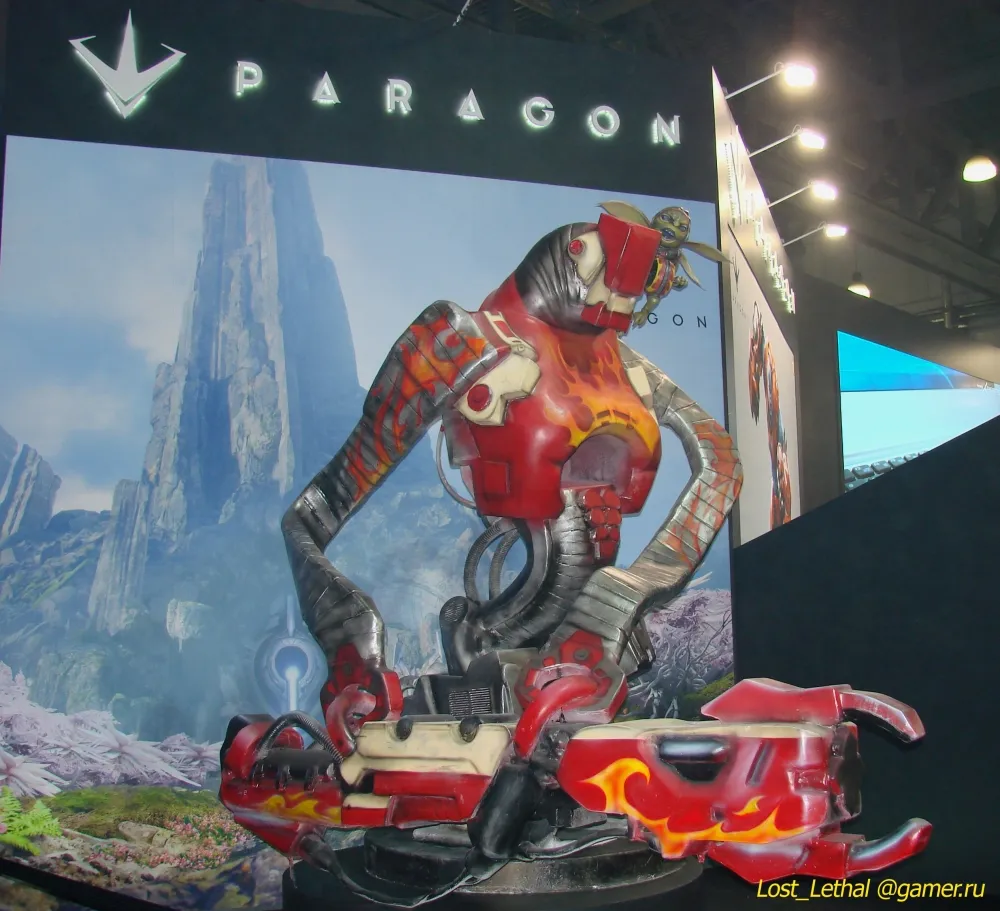 Paragon – новая MOBA для ПК и PlayStation 4. Стенд Epic Games был полностью отдан в её власть. Его украшало изваяние персонажа Grim.exe. Собственно Grim – мягкая летающая бяка, exe – это робот, которого он выиграл. И любой желающий мог получить листовку с кодом на образ (внешний вид), в котором это изваяние стояло, – образ, созданный специально для «ИгроМира».