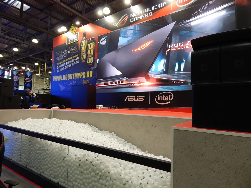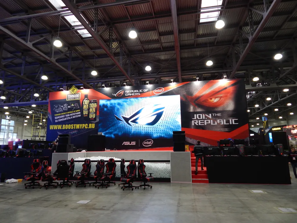 Представителей прессы допустили внутрь несколько раньше, чем VIP-геймеров, поэтому удалось быстро пробежать по относительно пустым залам.