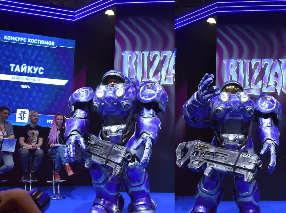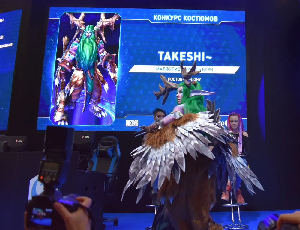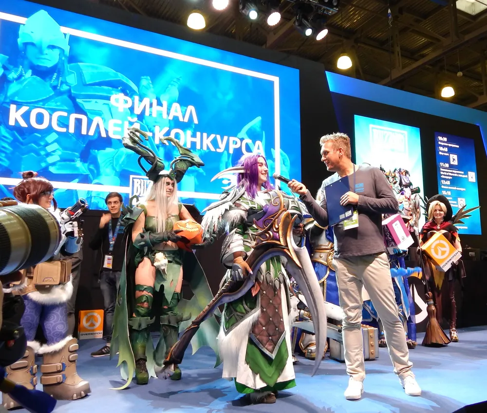 Однако время приближалось к финалу косплей-конкурса, надо было идти к сцене «Близзарда», чтобы занять удобное место. В ожидании и приближении понаблюдал ещё один конкурс: принять в нём участие я всё равно не смог бы, так как не играю в сетевые игры.