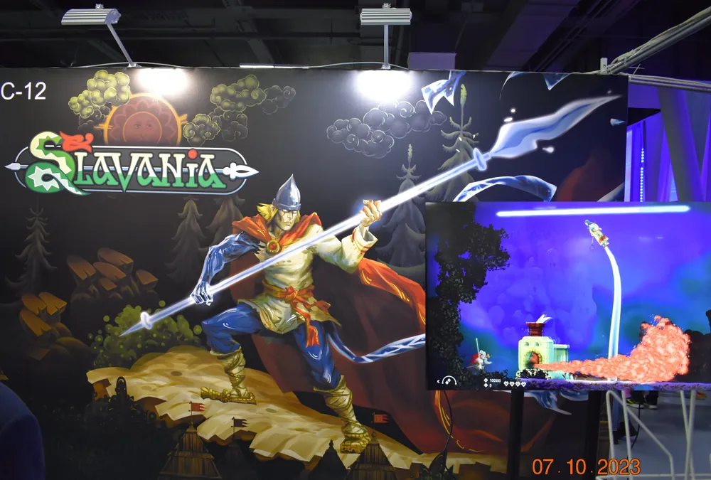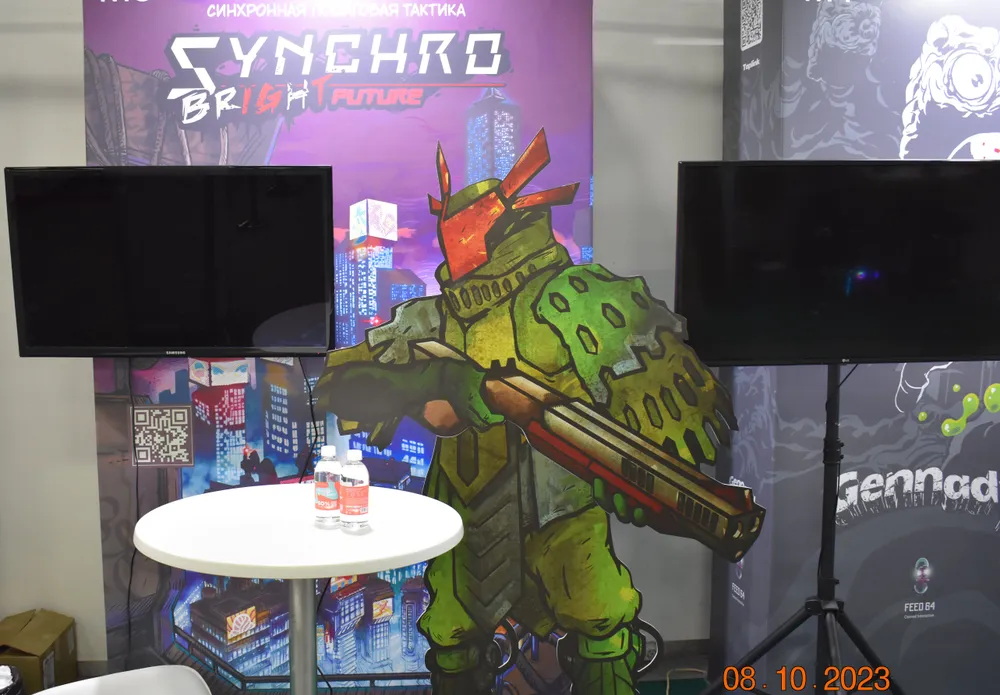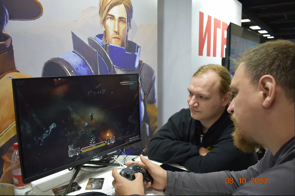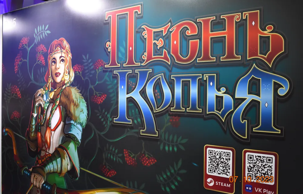 У игры "Песнь Копья" я задержался, процесс очень напоминал "Воина Севера". Игрок водит славянский отряд (во всяком случае, имена героев славянские) по начертанных дорожкам, находит клады, решает, как поступить при встрече - освободить медведя из капкана или нет? - и сражается. Я нашёл два бага: после выполнения квестового задания отряд не выпускали из зоны; во время боя один из бойцов перебросил кабана через себя и тут же оседлала его. Антон же "застрял" на два с лишним часа, что-то объясняя одному из создателей игры. (По-моему, тот исписал половину блокнота.)