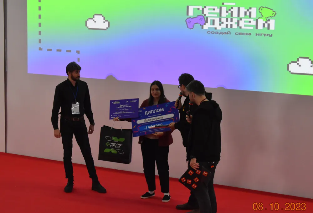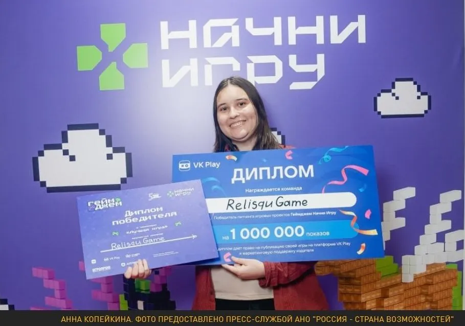 А между тем в главном зале начались награждения победителей. Анна Копейкина в одиночку создала проект "Спаси данные", получивший более миллиона просмотров.