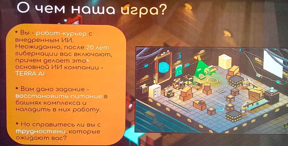 Первую игру этого дня представлял её создатель с небывалым пафосом: дескать, ничего подобного раньше не было, и это вообще игра игр! (Что касается моего мнения, то я лучше воздержусь от комментариев.)