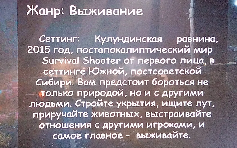 Создателю следующей игры всего девятнадцать лет, но амбиций много. В частности, он утверждает, что любой предмет в его игре можно будет если не использовать, то хотя бы сдвинуть с места. Обещана возможность приручения животных - от кошки до медведя.