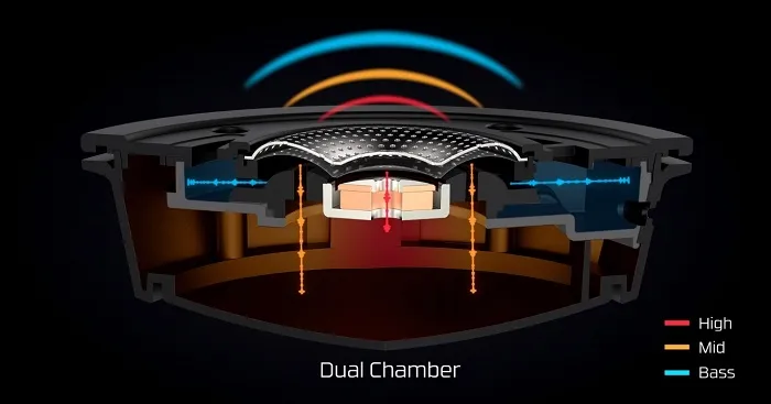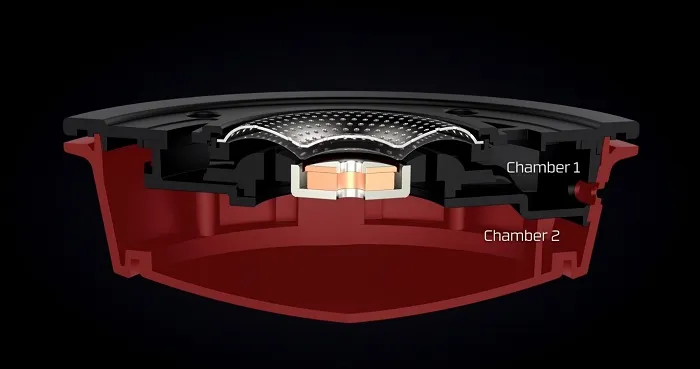 Зато чашки наушников у Cloud Alpha двухкамерные. Такого в игровых гарнитурах раньше не встречалось, только в супер-пупер аудиофильских «полноразмерниках», которые и в руки-то страшно брать, а вдруг останется царапка от ногтя, и с тебя вычтут вообще всю зарплату. Вместе с пенсией. Басы у Cloud Alpha раскачиваются в отдельной камере каждой чашки. В той, что подальше от уха, и только потом лезут к органам слуха, через специальные межкамерные отверстия. А верхи с серединкой стреляют в уши напрямую из ближних камер. В результате звуковые волны басов не натыкаются на звуковые волны верхов и низов, и никакого тебе паразитного резонанса, никакой вредной интерференции с ними не происходит. Звук получается чистоты неимоверной, как у хороших колонок с отдельным сабвуфером.