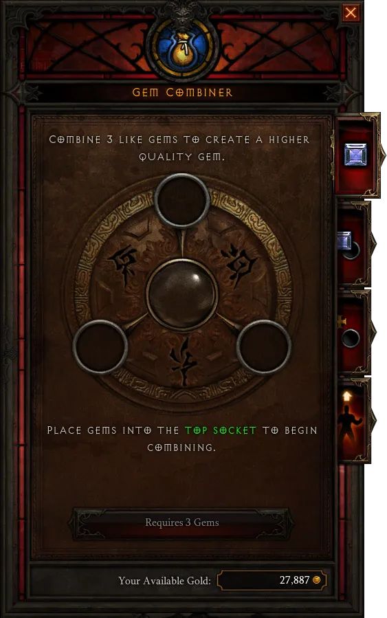 Что касается повышения качества камней – тут все осталось по-прежнему. Как и во второй части игры, в Diablo III от игрока требует собрать 3 одинаковых камня, которые затем при помощи Ювелира можно объединить в камень более высокого качества. Если же заняться математикой и подсчитать необходимое количество минералов, то можно на собственном опыте убедиться в том, что задачка эта не из легких.
