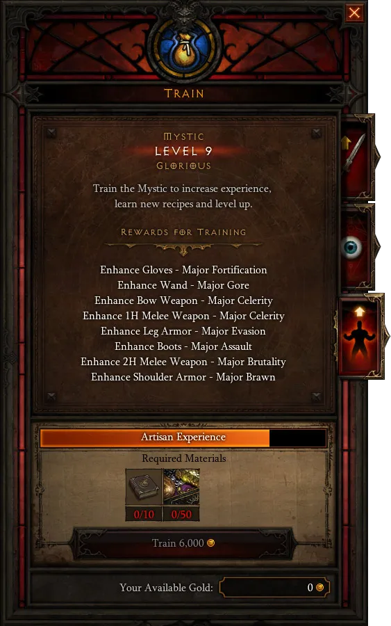 С повышением уровня мастерства ремесленников игроку будут открываться все новые и новые рецепты предметов, формулы и чертежи. Кузнец научится ковать более прочные доспехи и острые мечи, Ювелир – огранять и обрабатывать драгоценные камни, максимально раскрывая их потенциал. А Гадалка научится зачаровывать доспехи и оружие, повышая скорость его атаки, улучшая защиту или наделяя предметы экипировки особыми качествами. А чем щедрее вы будите снабжать золотом и ресурсами своих умельцев, тем скорее они смогут обзавестись новыми инструментами и оборудовать свое рабочее место.