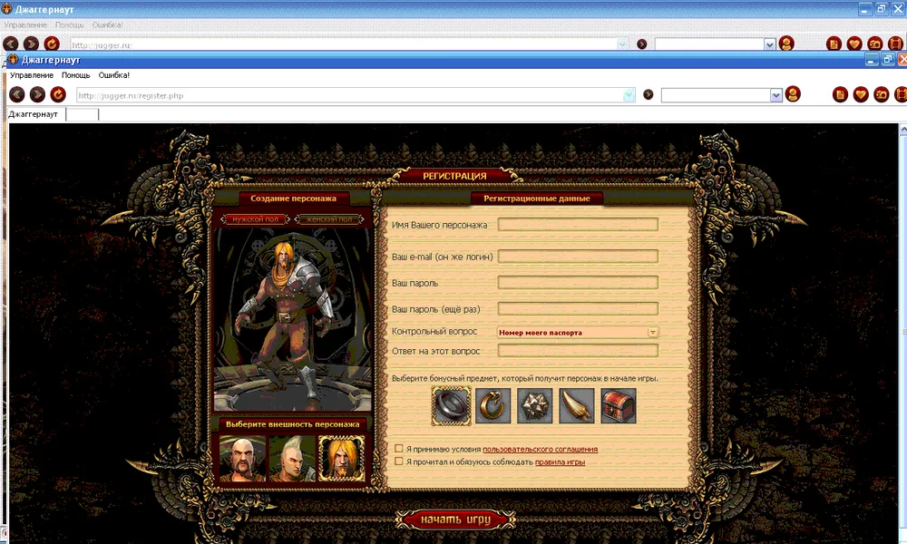 Ну тут начинается как обычно. Выбираем мальчика или девочку. Скажу честно, у девчонок, потом дальше, довольно таки симпатичные стринги, ну а парни остаются в деревенских штанишках. Набираю имя. Ввожу весь остальной постолат. Соглашаюсь с правилами (хотя не читаю их). И захожу.