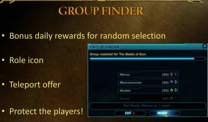 • Можете указать, куда искать группу, а куда не искать. Конечно, чем игрок избирательней, тем тяжелее найти других с такими же критериями.