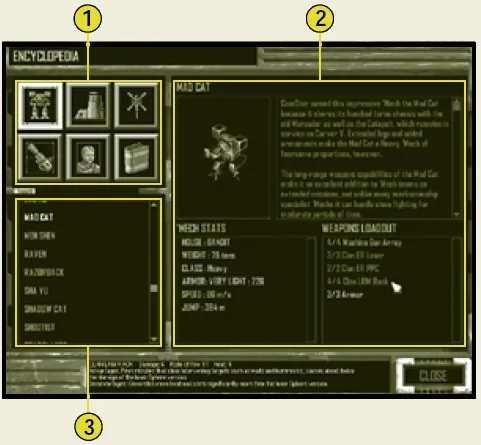 Энциклопедия Доступ к полной базе данных по MechCommander 2 (см. раздел «Энциклопедия»).