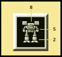- 3. Экран повреждений Здесь показаны секции меха спереди и сзади, а цветами показан их состояние: синий – нет повреждений, желтый – средние повреждения, красные – серьезные повреждения, а серый означает, что секция уничтожена. Если в критически поврежденной секции было оружие, то оно может быть уничтожено, боезапас может взорваться, а пилот при этом может быть ранен или убит.